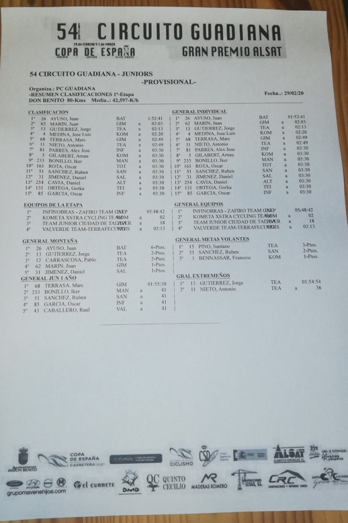 El Infiniobras Zafiro Team ha sido el mejor equipo y Marc Terrasa el primer junior de primer año. Juan Marín, del Giménez Ganga, ha entrado segundo, a 2 minutos y tres segundos. Buen papel de los alicantinos.
