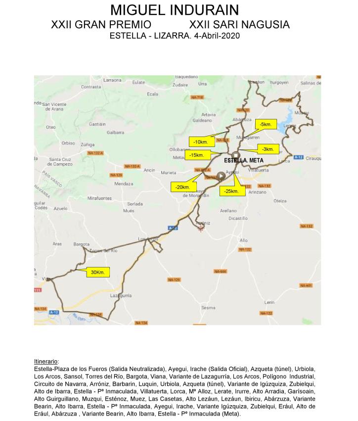 El próximo 4 de abril se disputará en Estella el Gran Premio Miguel Indurain. La carrera navarra ha ascendido este año de categoría, a UCI ProSeries, y por tanto ha incrementado el número de equipos World Tour y su presupuesto. La participación será de lujo. Ya hay confirmadas nueve escuadras World Tour, cuatro UCI profesionales y dos UCI Continental. Los World Tour son: Astana Pro Team, Mitchelton-Scott, Movistar Team, Cofidis, Israel Start Up Nation, Team Ineos, UAE Team Emirates, Bahrain-McLaren y CCC Team. Los UCI Profesionales son: Total Direct Energie, Caja Rural Seguros RGA, Fundación Orbea y Burgos BH, mientras que los dos UCI Continental son Kern Pharma y Boavista.