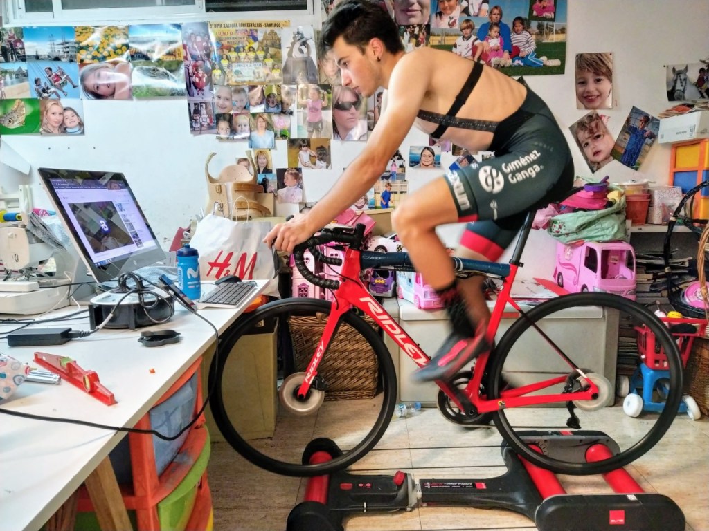 Por las tardes saco una hora para entrenar con el rodillo y mantener la forma, a la espera que todo esto pase, nos dejen salir a la calle y poder rodar en carretera, que es lo que realmente me gusta. Algunos días hago una pequeña tabla de gimnasia para mantener el tono, aprovechando el material que tengo en casa. No deja de ser una traba más que tenemos que superar, aunque al menos queda el consuelo de que estamos todos en la misma situación.