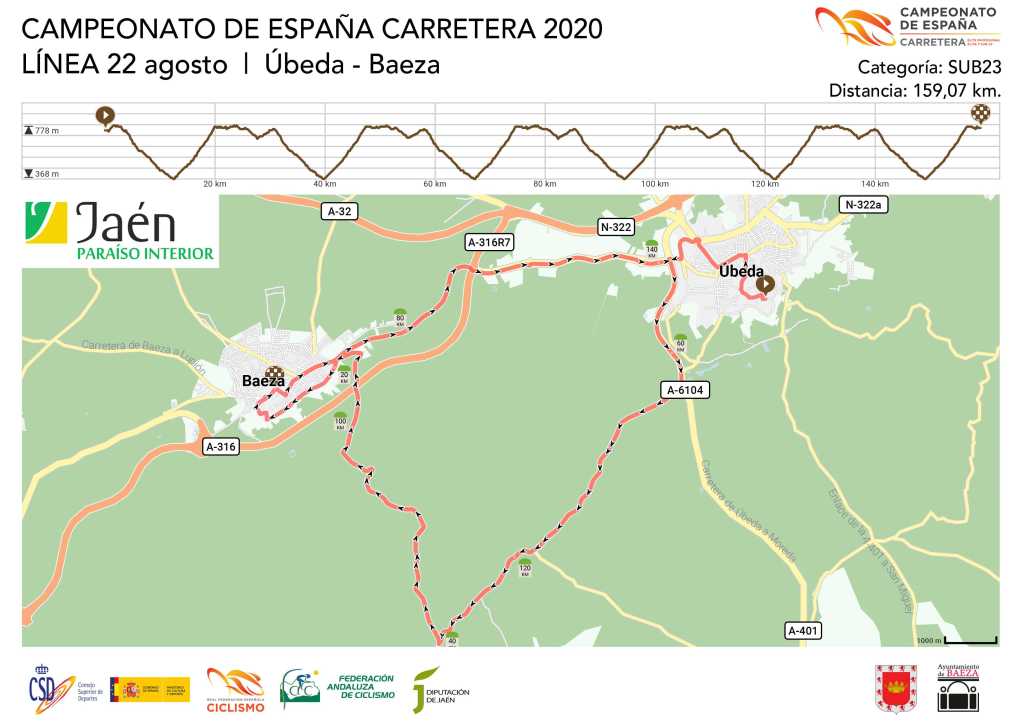 La cita sub 23 masculina, ya por la tarde, también con salida en Úbeda y llegada en Baeza, constará de un recorrido de 159 km. Tal y como señala Pascual Momparler, “los recorridos están aún sujetos a modificaciones por factores como la climatología, que pueden incidir en que nos veamos en la tesitura de tener que variarlos”.