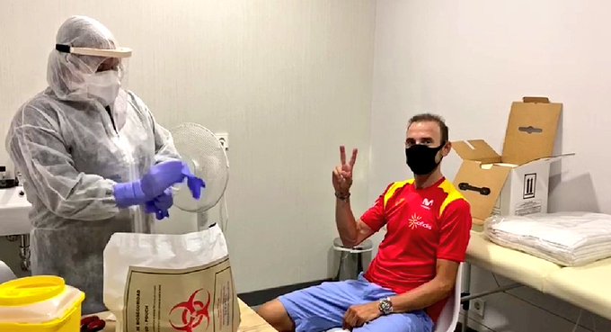 La mañana ha empezado con el control de temperatura, test y todo tipo de medidas de prevención para garantizar la seguridad de los ciclistas de la Selección Española.