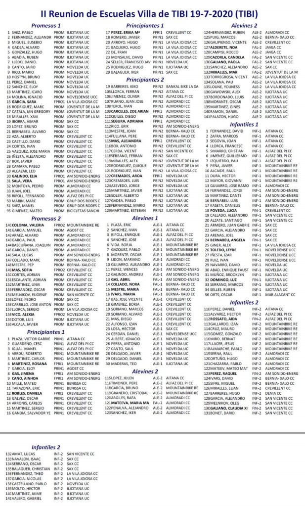En vísperas de la prueba de Benissa, prevista para el fin de semana del 14 de marzo, todo quedó suspendido. Tan sólo se había organizado el Trofeo Villa de Xaló de ciclismo Btt al que habían acudido 50 participantes. A partir de ahí todas las pruebas quedaron suspendidas y será el día 19 de este mes cuando regrese la competición. Los más pequeños están ansiosos por volver a la nueva normalidad ciclista y poder practicar el deporte que más les gusta, tras el trabajo realizado en la sombra junto a los monitores.
