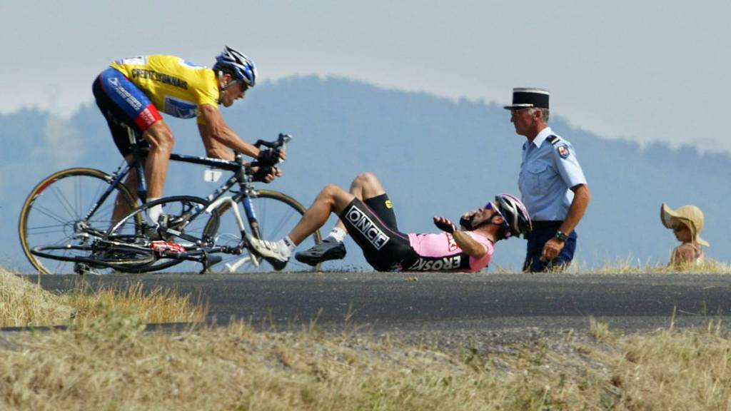 Vinokourov enfiló hacia la meta en la bajada de La Rochette, ajeno a los decisivos acontecimientos que ocurrieron detrás. Los líderes aceleraron en una carretera con brea, derretida, pegajosa. Beloki tuvo que frenar, le hizo un extraño la rueda trasera, se le salió el tubular. Y cayó a plomo. Para esquivarle, Armstrong se salió al prado, avanzó haciendo ciclocross, sin perder el equilibrio, hasta que volvió a enlazar con la carretera después de haber atajado unos 200 metros. Se echó la bicicleta al hombro y se reincorporó al grupo. Beloki, que no se pudo levantar, lloraba en los brazos de su director, Manolo Saiz. El Tour en el que el vasco tenía puestas muchas ilusiones en cambio lo acabó en un hospital de Gap, donde le diagnosticaron una grave fractura: el trocánter. Se había roto el fémur y despedía la temporada. Maldito 14 de julio de 2003, día de la fiesta nacional francesa.