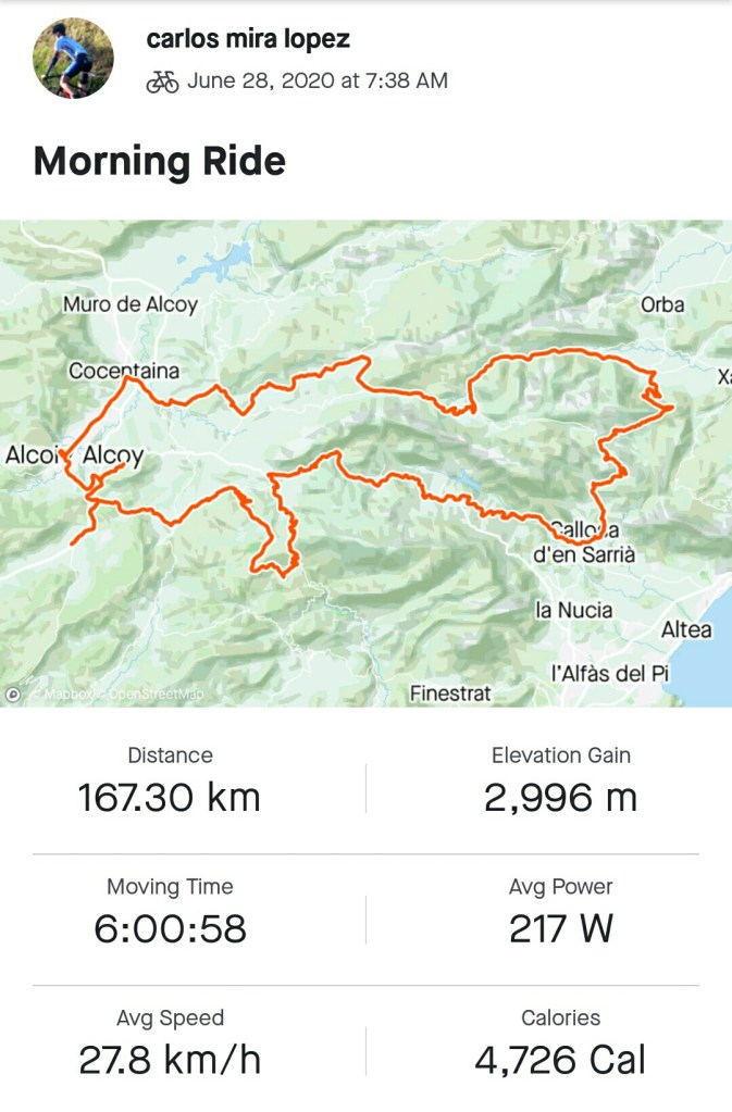 de Tudons por Alcoleja y por Seguró. Al final me salieron 167 kilómetros y 3.000 metros de desnivel».