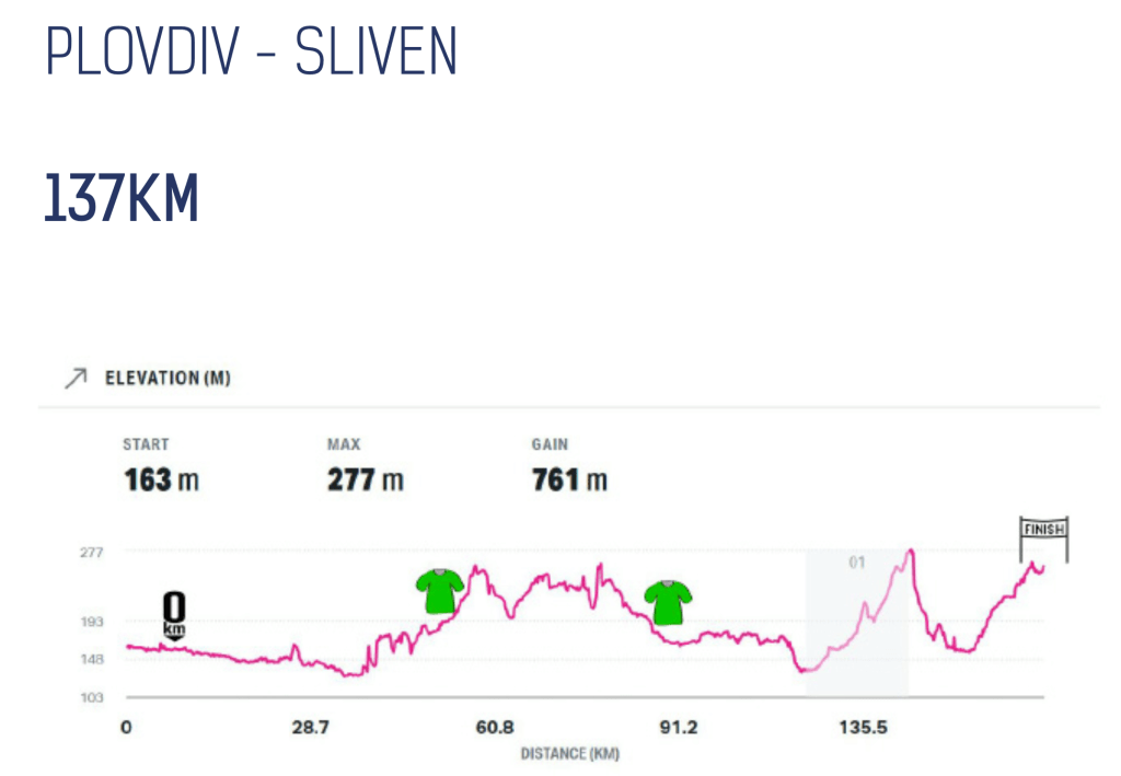 La tercera jornada de la ronda búlgara cuenta con 152 kilómetros y se disputa el jueves entre Plovdiv y Sliven.