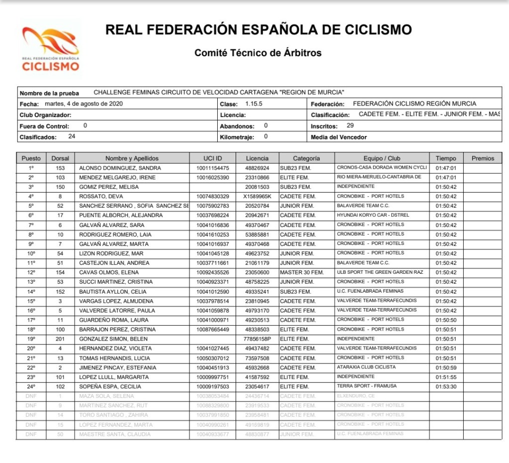Tres de tres. Sandra Alonso (Casa Dorada) se ha impuesto esta mañana en la primera de la dos pruebas de la Challenge de Féminas “Circuito de Velocidad Cartagena Región de Murcia” que ha organizado la Federación Murcia de Ciclismo. La segunda plaza ha sido para Irene Méndez y la almoradidense Melisa Gómiz ha sido tercera. Sandra e Irene se disputaron el triunfo al esprint y Melisa fue la primera del pelotón. “Me he intentado ir en varias ocasiones y cuando lo han hecho Sandra Alonso e Irene Méndez me he reservado para el esprint y me ha salido bien. Estoy contenta”, apuntaba la corredora de VIB Sport Natural Greatness.
