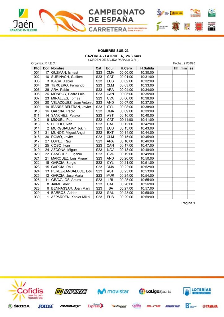 * 10:30 horas / CRI Sub23 masculina / Cazorla – La Iruela / 26,3 km