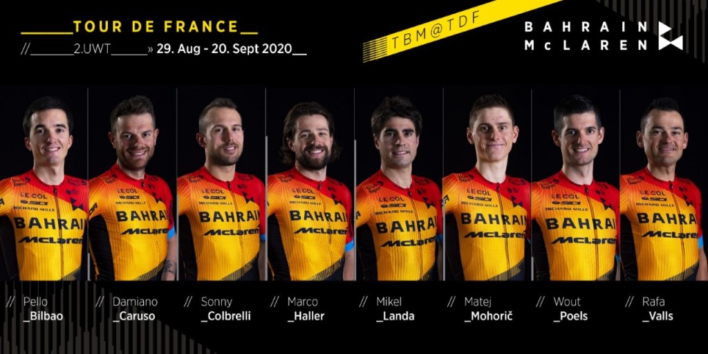 El equipo del Team Bahrain McLaren 2020 Tour de France estará formado por: