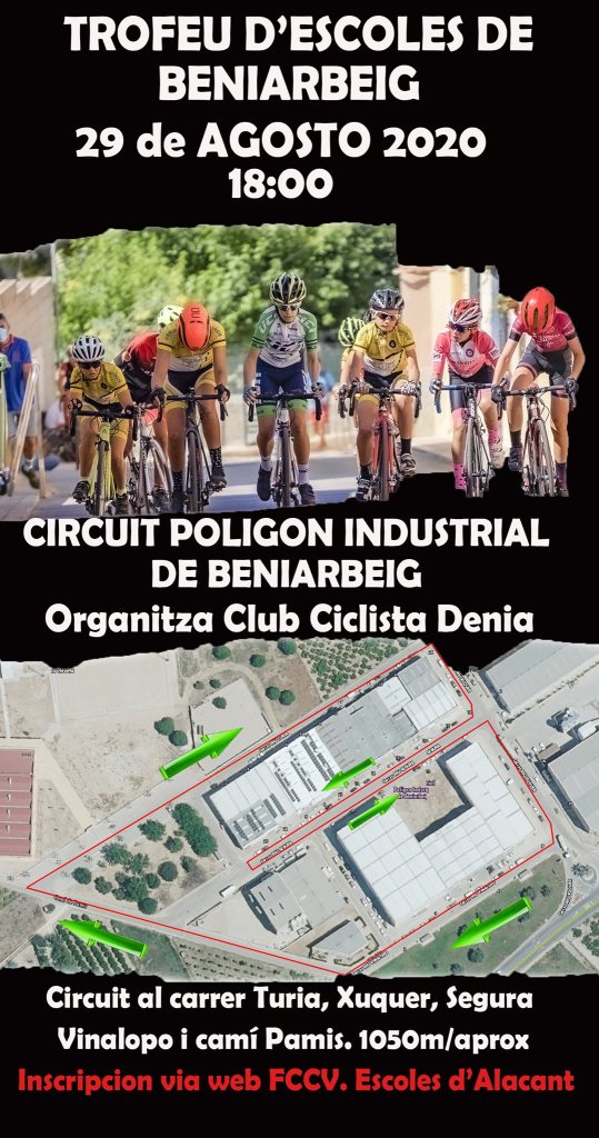 El sábado, día 29 de agosto, a partir de las 18 horas, se disputará el Trofeu D’Ecoles de Beniarbeig organizado por el Club Ciclista Dénia y patrocinado por el Ayuntamiento de la localidad alicantina. Cerrada la inscripción este mediodía ya se conoce que serán 101 los ciclistas de la provincia de Alicante los que participarán en dicha carrera que coge el relevo de las disputadas en Tibi y Almoradí una vez se abrió la veda a las pruebas de Escuelas, tras el parón provocado por el Covid-19. Se espera que el tiempo acompañe y los pequeños puedan disfrutar de una jornada de ciclismo.