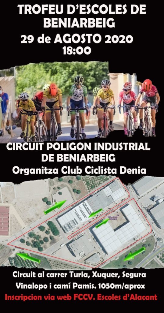 Una semana más tarde, el día 5 de septiembre, y si lo permite la meteorología, se disputará, a partir de las 18 horas, el Trofeu D’Ecoles de Beniarbeig. Una fuerte tormenta impidió que se celebrara la prueba el pasado sábado y 101 niños inscritos se quedaron con las ganas de competir. El Club Ciclista Dénia, organizador de la competición, ha encontrado el apoyo del Ayuntamiento de la localidad alicantina, con el alcalde, Juan José Más, a la cabeza, para volver ofrecer a los más pequeños un día de fiesta ciclista.