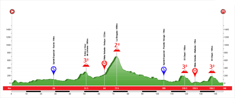 La primera jornada de la ronda cántabra, con un pelotón de 175 unidades, tiene salida y meta en Maliaño y consta de 145,9 kilómetros