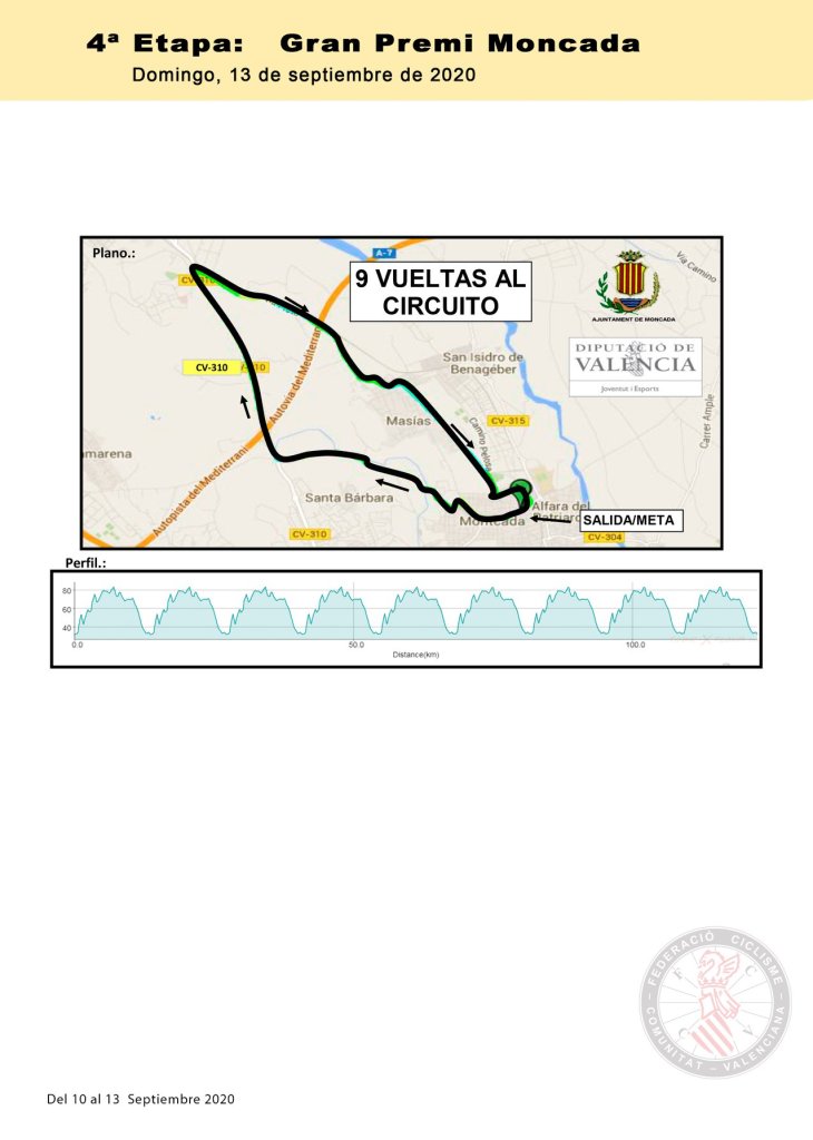 Por último, la competición concluirá el domingo con una jornada en el circuito semiurbano de Moncada, como viene siendo tradicional en los últimos años. Será una gran oportunidad para que los mejores sprinters del pelotón puedan lucirse y el día en el que se conozca el nuevo campeón de la carrera. Además del ganador de la clasificación general, se repartirán otros maillots a los distintos vencedores por puntos, montaña, metas volantes, categoría sub 23 y mejor corredor de la Comunitat Valenciana.