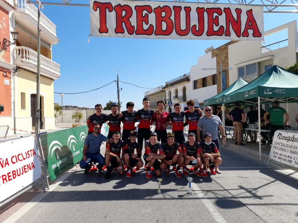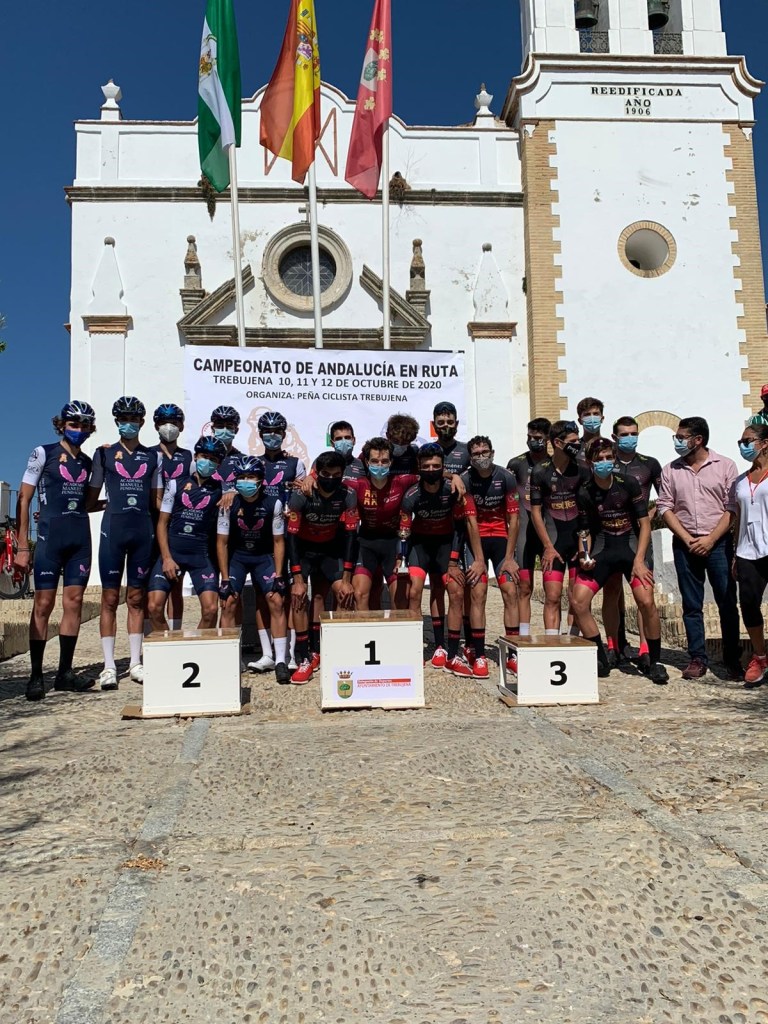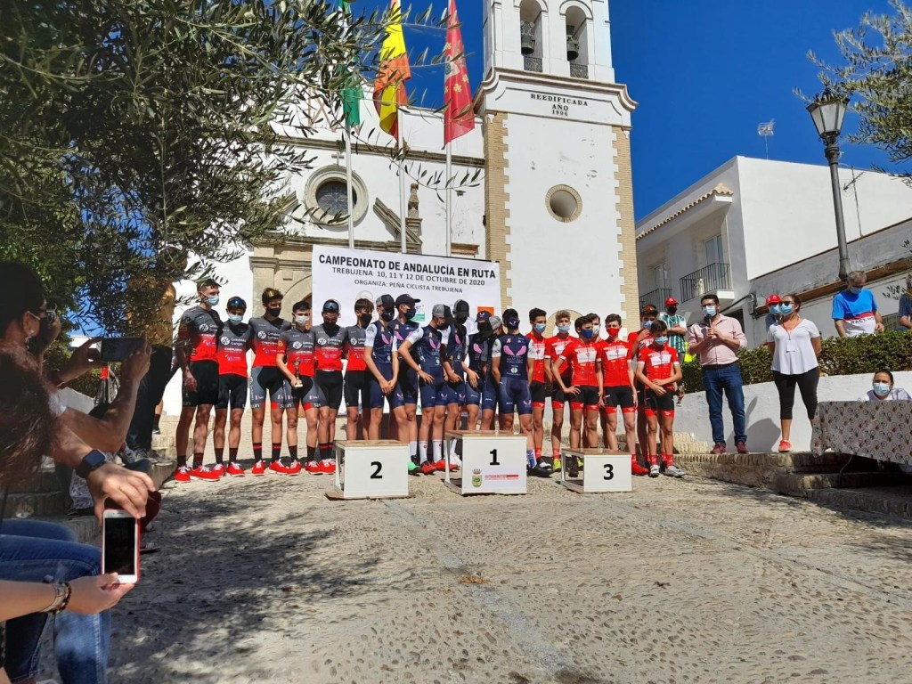 El Giménez Ganga Cherubini Primoti júnior ha logrado el triunfo en la contrarreloj por equipos disputada en Trebujena, sobre una distancia de 5,6 kilómetros, dentro de los Campeonatos de Andalucía de Carretera 2020 para Cadetes, Júniors y Féminas, en la Vuelta Ciclista “Ruta del Mosto”. El conjunto sajeño paró el reloj en los siete minutos y 23 segundos. La segunda plaza fue para el Academia Manuel y la tercera la consiguió en Cartagena. En la categoría cadete, el Giménez Ganga Cherubini Primoti fue segundo, por detrás del Academia Manuela. La tercera posición se la adjudicó el Trebujena.