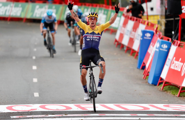 El esloveno del Jumbo-Visma, ganador el año pasado, ha empezado La Vuelta recuperando La Roja. Segunda victoria de etapa para Primoz Roglic en la carrera española después de un muy buen ataque en el último kilometro de etapa. Segundo fue Richard Carapaz (Team INEOS), a 5” en la general, y tercero Dan Martin (Israel Start Up Nation), a 7” del liderato.