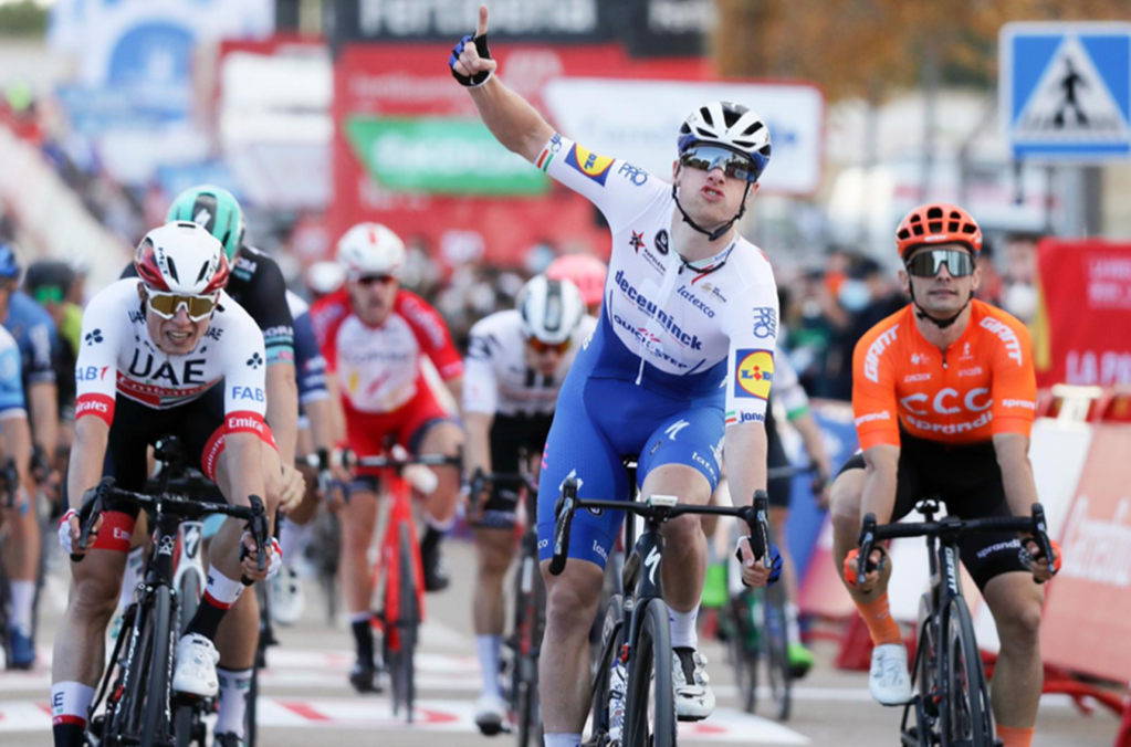 Después de otro intento de Movistar Team e Ineos Grenadiers de tensar el ritmo y romper el pelotón, fue el turno de los trenes. Pelotón agrupado a falta de 15 km para la llegada. De nuevo, el ritmo subió hasta casi los 70 km por hora. El Deceuninck Quick Step demostró, otra vez, porque tienen más victorias que nadie cada temporada. Primero con Rémy Cavagna llevaron el tren a cabeza y después con Michel Morkov volvieron a colocar a Sam Bennett entre los mejores. Pero el joven Jasper Philipsen y el UAE Team Emirates, fueron los que mejor tomaron la última curva. El joven belga de 22 años se lanzó a por su primera victoria en una Gran Vuelta… pero el irlandés apareció justo para ganarle sobre la línea de llegada en Ejea de los Caballeros. Su tercera victoria en La Vuelta. VER CLASIFICACIONES