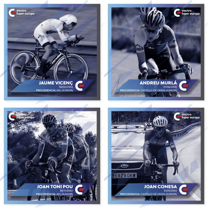El equipo valenciano élite y sub 23, Electro Hiper Europa, anuncia la incorporación de cuatro corredores debutantes en la categoría sub 23, procedentes de dos de los equipos Júnior más fructíferos de los últimos años a nivel nacional.