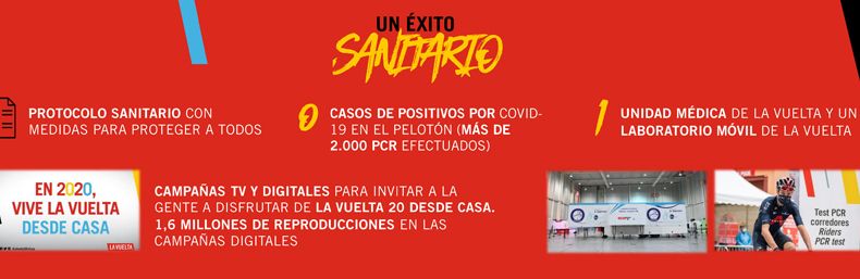 Unipublic también ha reflejado el éxito sanitario obtenido por la ronda española -en un entorno muy difícil por la pandemia-, ya que no hubo ningún caso positivo por COVID-19 en el pelotón, donde se realizaron más de 2.000 test PCR.