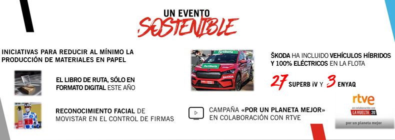 La sostenibilidad de La Vuelta 2020 es otro de los argumentos que destaca Unipublic a la hora de hacer balance, con iniciativas para reducir al mínimo la producción de materiales en papel, como que el Libro de Ruta solo estaba disponible en formato digital, el reconocimiento facial en el control de firmas, o la campaña «Por un Planeta mejor» realizada en colaboración con RTVE. Además se recuerda que Škoda -suministrador de los vehículos oficiales- incluyó en la flota de la carrera vehículos híbridos y cien por cien eléctricos.