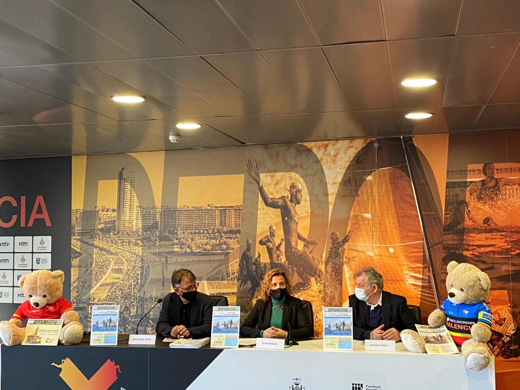El Complejo Deportivo Cultural Petxina ha acogido esta mañana la presentación de la XXIII Edición del Ciclocross Internacional Ciudad de Valencia, organizada por el Club Peña Ciclista Campanar junto con la Federación de Ciclismo de la Comunidad Valenciana (FCCV) y la Fundación Deportiva Municipal. Es la última prueba de la Copa de España. El acto ha contado con la presencia de la concejala de Deportes del Ayuntamiento de Valencia y presidenta de la Fundación Deportiva Municipal, Pilar Bernabé, del director general de Deportes, Josep Miquel Moya, y del presidente de la FCCV, Amadeo Olmos. También ha asistido el presidente del Club Peña Ciclista Campanar, Estanislao Guillot.