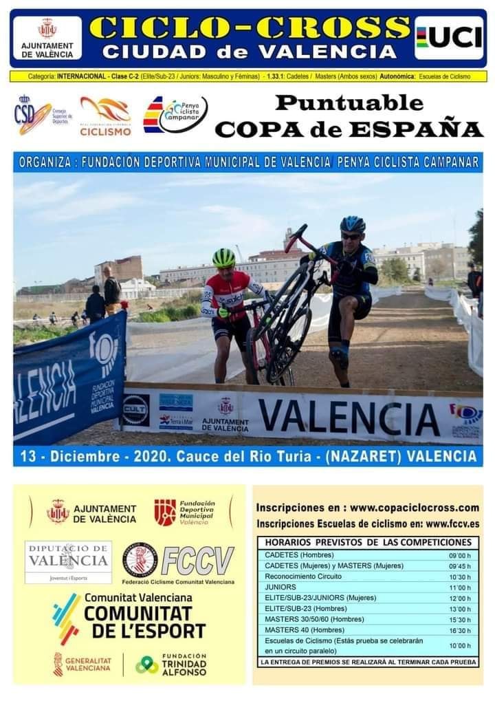 Al día siguiente, en el antiguo cauce del río Turia, a la altura de Nazaret, se disputará el XXIII Ciclocross Internacional Ciutat de València, organizado por la Peña Ciclista Campanar. Tanto en Xàtiva como en València, la manga élite y sub 23 masculina, en la que tomará la salida Felipe Orts, dará inicio a la una de la tarde. Antes, a las doce, lo hará la prueba élite y sub 23 femenina, con la valenciana Sara Bonillo –que partirá como líder de la Copa de España en categoría sub 23- entre las participantes.