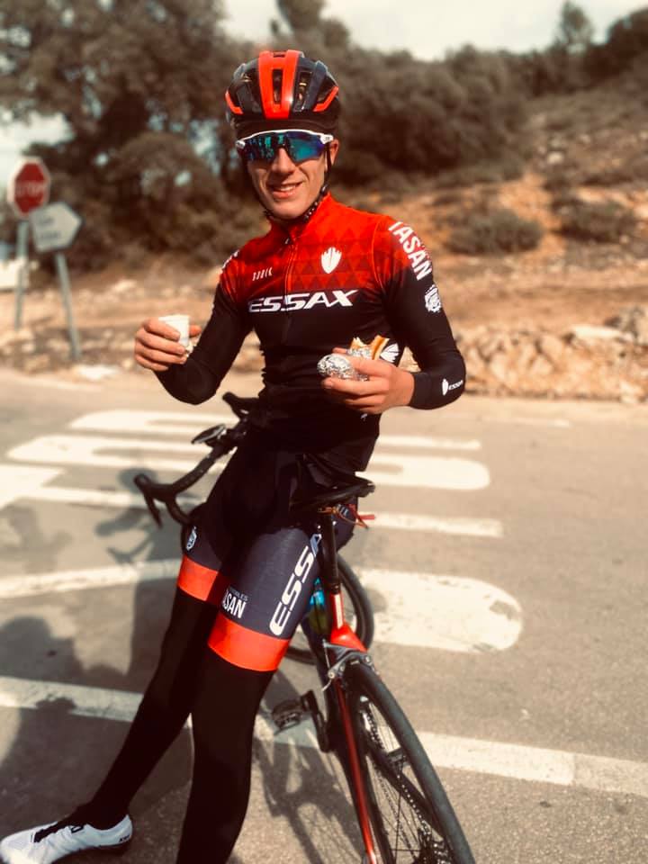 Nacho Gálvez (Madrid, 18/04/2001) lució el domingo el maillot del Equipo Essax en el Super Cup XCO Cadalso de los Vidrios. El triatleta madrileño ha decidido dar el salto al ciclismo de carretera como lo han hecho otros como Ander Okamika. De hecho, la pasada campaña compitió en cinco carreras en el Tenerife BikePoint Pizzería Española a modo de prueba. De los tres deportes que practicaba el ciclismo era el que mejor se le daba y aquí está en el equipo amateur del Club Ciclista Sax dispuesto a trabajar duro para ampliar sus límites. “Estuve probando con cinco carreras y me gusto. Me he acostumbrado bien y creo que puedo estar ahí. Es otro mundo. Estás en un pelotón de más de cien personas alrededor que te meten codos y vas a 60 kilómetros por hora. Una locura. Menos mal que no me fui al suelo nunca. Mi madre me dejó claro que se me caía no hacía ciclismo y la verdad que no me voy al suelo (Risas)», relata en madrileño. Nacho fue en 2028 campeón de España triatlón cross y de duatlón cross en la categoría cadete. Al año siguiente, en 2019, subió a lo más alto del podio como campeón de Madrid elite y junior de triatlón; fue tercero de España de duatlón junior; y subcampeón del mundo junior de triatlón cross. Y en 2020, se proclamó campeón de Europa de duatlón como júnior.
