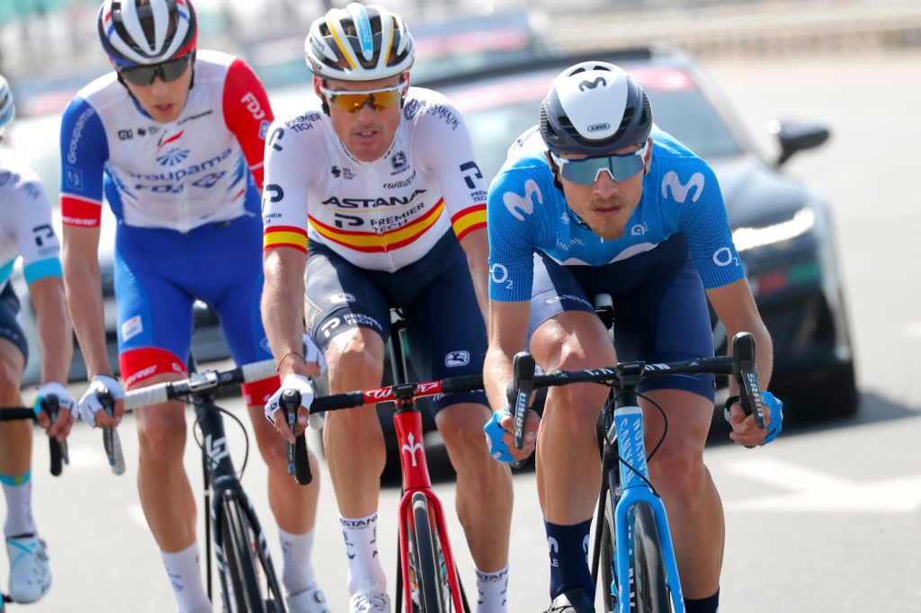 El más joven de la alineación del Movistar Team en tierras emiratíes, Iñigo Elosegui, se filtró en un potente grupo con Lutsenko, Sánchez (APT), Valter, Ladagnous (GFC) y Gallopin (ACT), una escapada que fue neutralizada a poco más de una veintena de kilómetros de la llegada tras unos intentos de abanicos, propiciados por Bora-hansgrohe, que redujeron sensiblemente su margen.