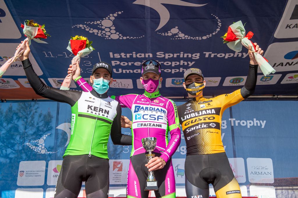 | No han tardado en llegar los éxitos al Equipo Kern Pharma. El esprínter navarro, Enrique Sanz, ha brindado al conjunto farmacéutico el primer podio de la temporada en el Poreč Trophy (Croacia, UCI 1.2). Un resultado que culmina el gran trabajo que los ciclistas dirigidos por Pablo Urtasun han realizado durante todo el día. Tras un primer intento el miércoles en el Umag Trophy, los corredores del Equipo Kern Pharma han volcado todas sus fuerzas en los 156 kilómetros que componían un recorrido que se adaptaba muy bien a las características de Enrique Sanz, líder del equipo en la prueba. El fuerte ritmo del pelotón ha impedido que los distintos intentos de escapada fructificasen, lo que ha derivado en un rápido esprint en el que Filippo Fiorelli (Bardiani-CSF-Faizanè) se ha llevado la victoria. “Son carreras de un día en las que no es fácil llegar bien colocado”, valora Pablo Urtasun, director del Equipo Kern Pharma en la expedición croata. “El otro día nos faltó colocación y hoy parece que ha salido todo más o menos bien. Es una recompensa al esfuerzo de todos, todos trabajamos con el mismo y, de cara a Enrique, es la confirmación de que va por el buen camino. Quedamos contentos porque hemos estado en la pelea, que es donde queremos estar”, concluye. Enrique Sanz, por su parte, valora positivamente el resultado: “Hemos estado controlado, en las fugas no dejábamos marchar”. El navarro destaca también la labor de sus compañeros que “han trabajado mucho y han hecho la última subida dura». “En el cómputo general, todo el equipo ha estado muy bien porque han controlado toda la carrera”, detalla, y confiesa que este resultado supone un extra de motivación: “Estoy motivado por la sensación de las piernas, que van bien, aunque todavía no están al cien por cien, pero confirmamos que vamos por el buen camino”. La próxima cita del equipo navarro tendrá lugar del 11 al 14 de marzo en tierras croatas con la disputa del Istrian Spring Trophy (Croacia, UCI, 2.2). También, el domingo 14 de marzo, un segundo bloque tomará la salida en la Paris-Troyes (Francia, UCI 1.2, 14/03). Poreč Trophy (Croacia, UCI 1.2, 07/03) 07/03- 11:00 – 14:30. Poreč – Tar, 156 km 1. Filippo Fiorelli (Bardiani-CSF-Faizanè) 3h19’54» 2. Enrique Sanz (Equipo Kern Pharma) m.t. 3. Tilen Finkšt (Ljubliana Gusto Santic) m.t. Fuente. Prensa del Kern Pharma |