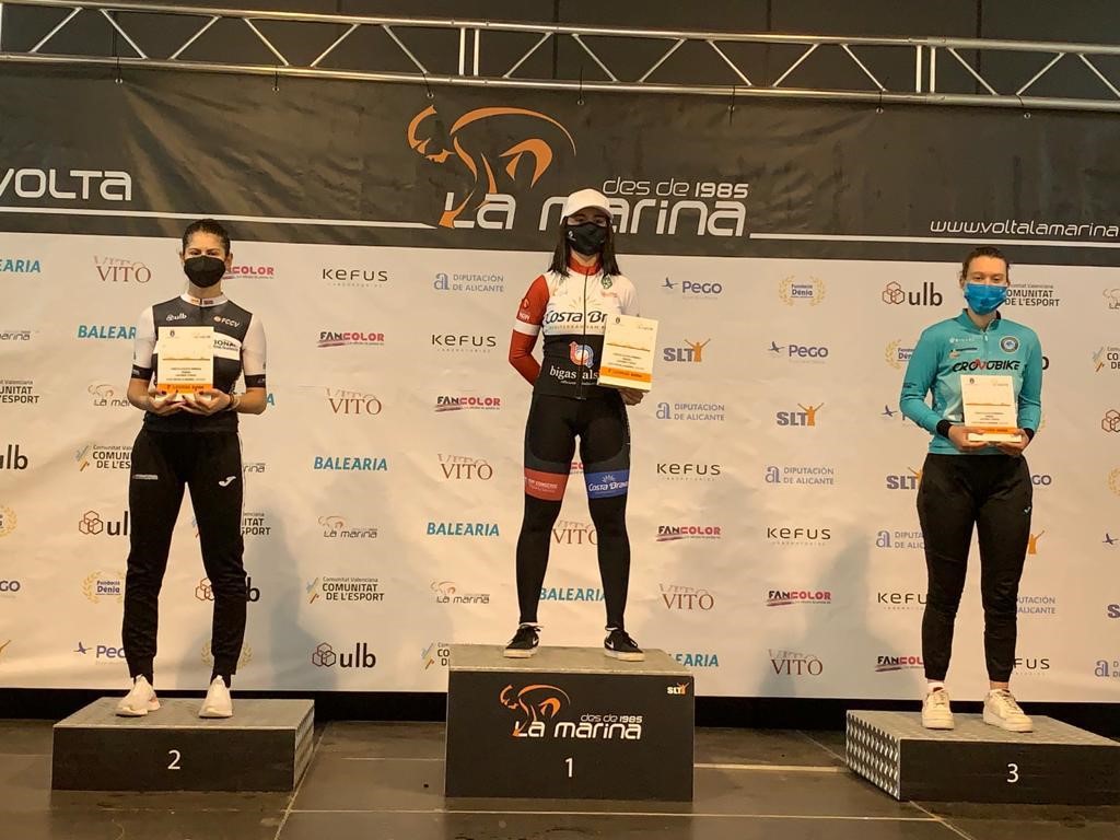Sofía Rodríguez (Sopela Women’s Team) se ha impuesto en la I Volta Ciclista Fémines-Ajuntament d’Ondara tras parar el reloj en la hora, 53 minutos y 12 segundos. Lucía García Muñoz (Costa Brava) ha sido segunda, con un tiempo de 1-54-44, y primera júnior, mientras que Paula Soler (Sopela Women’s Team) ha completado el podio. La alicantina Anna Ginestar (International Cycling Academy) ha sido cuarta y segunda júnior. Cristina Succi (Cronobike-Granja Rinya) ha subido al podio como tercera juvenil. Laia Bosch (Costa Brava) ha vencido en la categoría cadete; Teresa Ripoll (Team Farto), ha ganado en la élite; Saida Perea (Beniopa PC), en M30; y Véronica Palazuelos (WS Master), en M40. Destacar la tercera plaza de Raquel Pérez (AM Sonido-Energym) en cadetes y el mismo puesto de Amparo Chapa (La Vila), el élites.