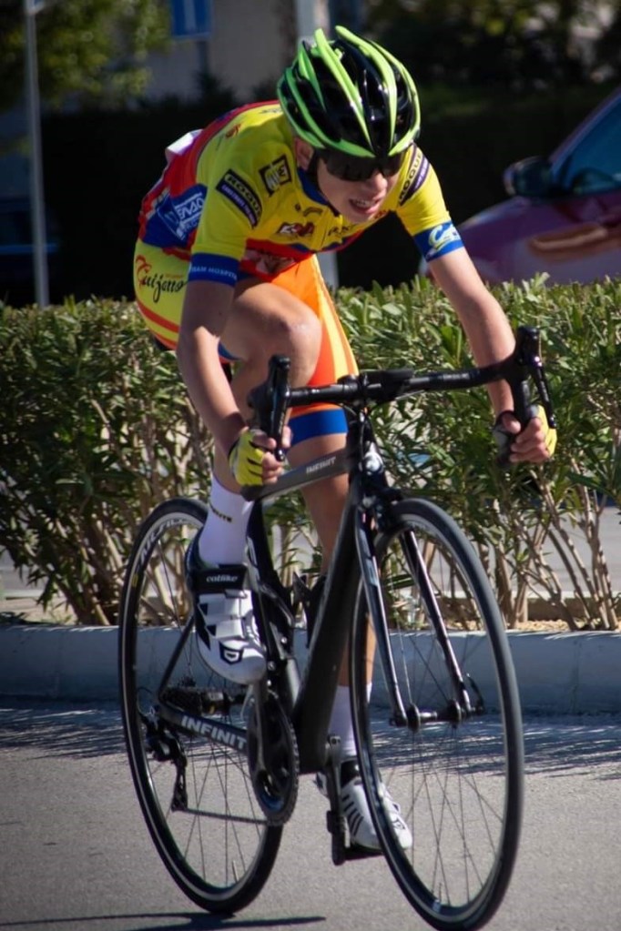 Gracias a un amigo que invitó a probar. La verdad es que desde el principio me encantó y aquí sigo dándole a los pedales. Me inicié en un club de Novelda, el UCN-Comenersol, que me enseñó todo lo básico y necesario. Con ellos competí en mis dos temporadas de escuelas: primer y segundo año de infantiles. Luego, en cadetes, me fui al Club Ciclista San Vicente, más concretamente al GD Llopis. El único triunfo que tengo fue en pista, en velocidad por equipos, que hicimos podio en el Autonómico. La verdad que la suerte no me ha acompañado en algunas carreras que iba bien para ganar o hacer podio, al final siempre me caía.