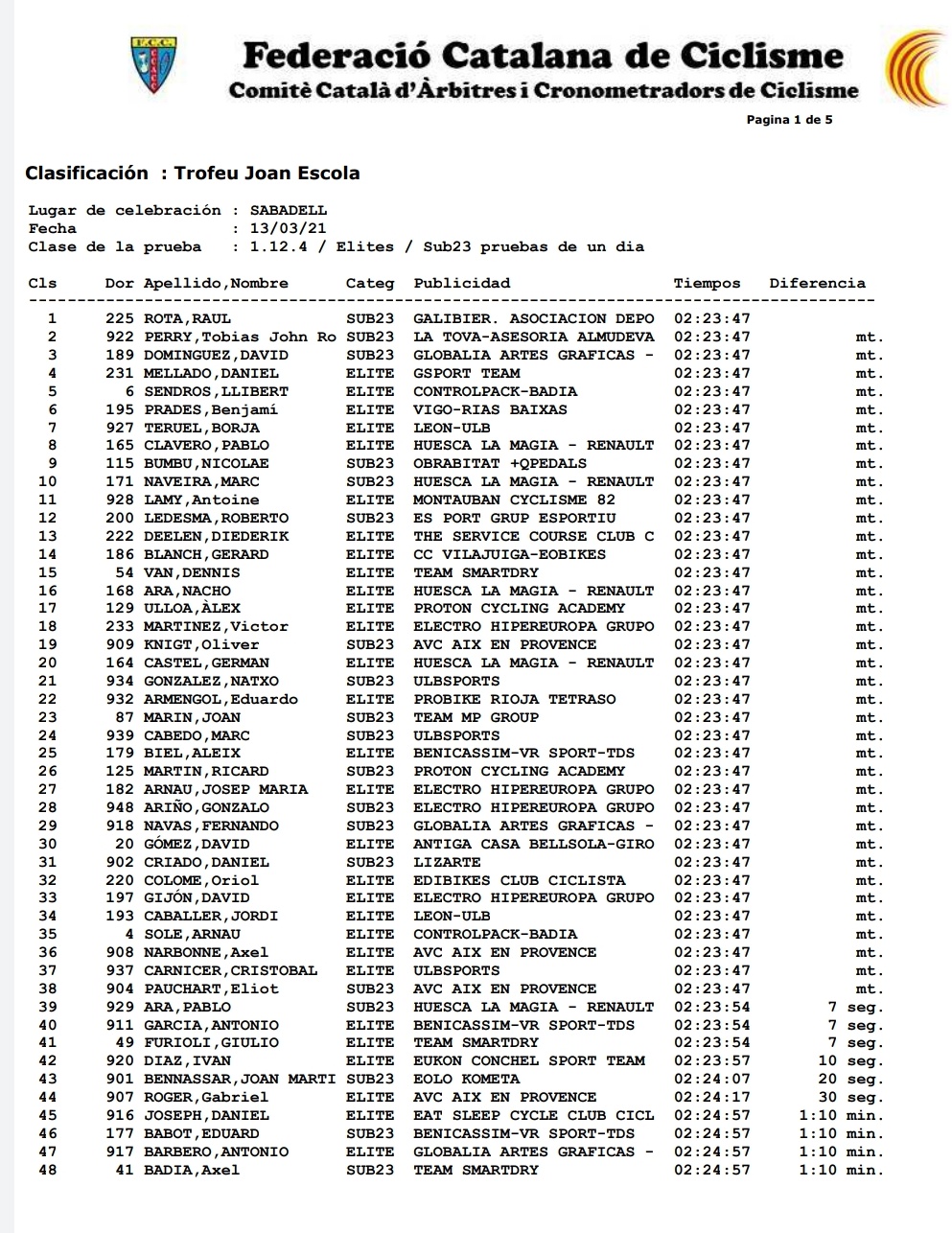 Raúl Rota sacrificó el inicio de la Copa de España de este domingo por correr en casa. La decisión no pudo ser más acertada y este sábado, el ciclista catalán logró su primera victoria en la categoría en su ciudad, Sabadell, en la primera carrera de las Grandes Clásicas, el 50è Trofeu Joan Escolà.