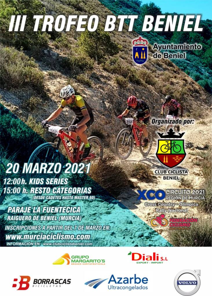 Mañana sábado, 20 de marzo, se celebra el Trofeo BTT Beniel dentro del Circuito XCO Región de Murcia 2021. A las 12:00 se iniciarán las Kids Series, y a las 15:00 el resto de categorías, desde cadetes hasta másters. La participación alicantina es muy numerosa y existen muchas opciones de subir a todos los podios. El Mundo Bike Gobik Team acude con Rosa Alba Santamaría, Miguel Antón González de la Aleja, María José Berenguer, Héctor García, Óscar García, Manuel Lópèz, Joaquín Illán y Manuel Sánchez Aldeguer.