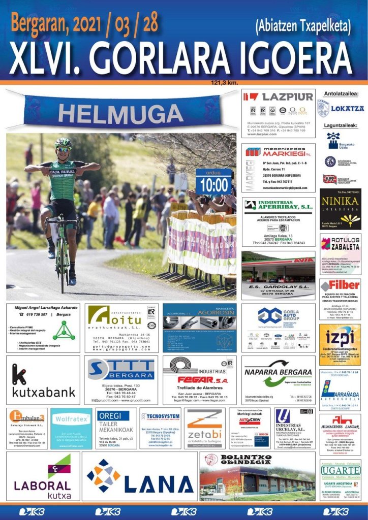 La XLVI Subida a Gorla se disputa el domingo, sobre 121 kilómetros y dos subidas a la cima bergararra, con la meta en la segunda. Con presencia de élites y sub-23, la salida se dará a las 10.00 horas y la llegada está prevista hacia las 13.00. En la línea de salida estará Eugenio Sánchez con el maillot del Lizarte Team, además de cuatro corredores del Netllar Alé y cuatro del Equipo Essax. La organización no ha dado más plazas y en principio Sergio Jiménez, Tom Martin, Marcos Navarrete y Louis Sutton representarán al equipo alcoyano, mientras que Tomás Miralles, Martín Gil, Nacho Gálvez y Alfonso Campoy lucirán el maillot del conjunto élite y sub 23 del Club Ciclista Sax. No se descarta que pueda entrar algún corredor más a última hora.