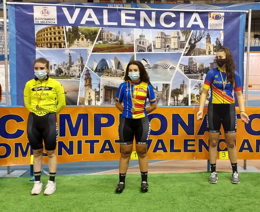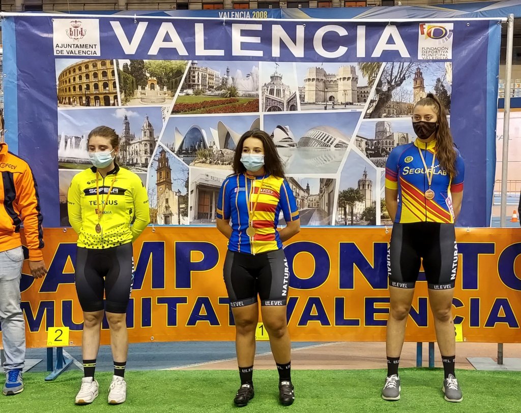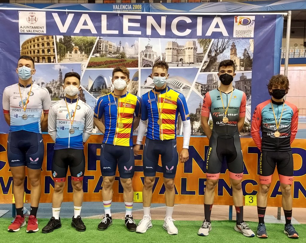 Pedro Beneit (Escribano), Anna Ginestar (International Cycling Academy), Óscar Orts (Mar Alicante), Alejandro Callado (San Vicente) y Estefanía Hurtado (Natural Greatness) subieron a lo más alto del podio en la primera jornada de los Campeonatos de la Comunidad Valenciana de Pista que se están disputando este fin de semana en el Velódromo Luis Puig de València . Beneit lo hizo en Persecución Sub 23, con Raúl Granados (Cartagena), tercero; Ginestar, en Scratch júnior, con Cristina Succi (Cronobike), tercera ; Ots, en Scratch infantil; Callado, en Puntuación infantil, con Orts, segundo; y Hurtado, en Scratch, 200 metros y Persecución sub 23.