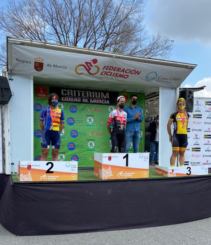 El Critérium Ciudad de Murcia disputado el domingo, en la Avenida Miguel Indurain de la capital murciana, dejó un buen sabor de boca entre la representación femenina alicantina. Melisa Gómiz (Natural Greatness) subió a lo más alto del podio en la categoría sub 23 y lo mismo sucedió con Cristina Succi (Cronobike-Level) en júniors. En la categoría juvenil Marta Galvañ (Valverde Team) fue cuarta; su hermana Sara, sexta; Selena Maza (Valverde Team), octava; y Laura Martínez (Mar Alacant), novena.