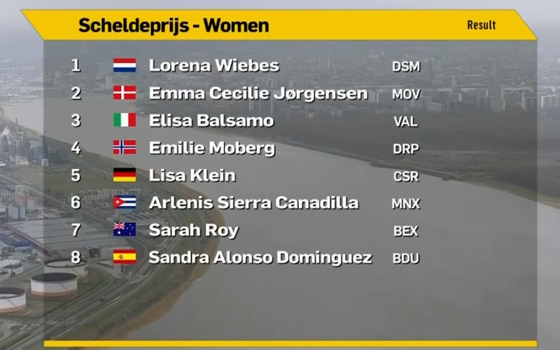 Sandra Alonso (Bizkaia Durango) ha logrado la octava plaza, primera española, en la clásica belga Scheldeprijs Vrouwen Élite. La torrevejense ha entrado sin ningún tipo de complejos en el esprint final, tras una gran carrera, y ha firmado un espectacular top 10. Lorena Wiebes (Team DSM) ha sido la ganadoras, por delante de Emma Cecilie Jorgensen (Movistar Team) y de Elisa Balsamo (Valcar Travel).