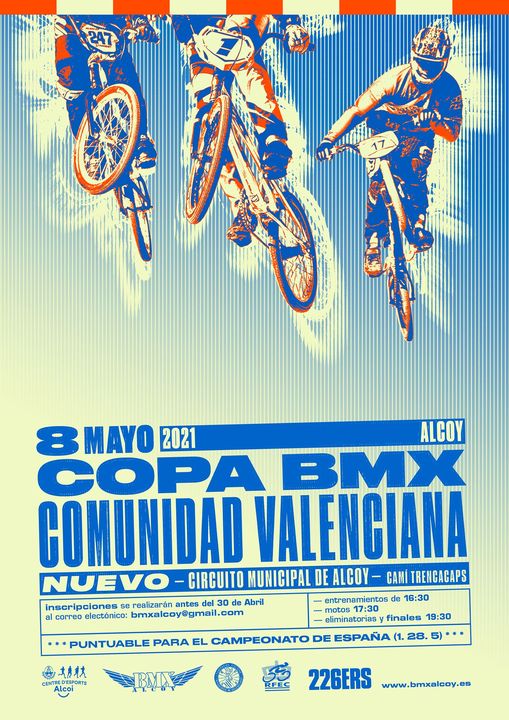 La Federación de Ciclismo del a Comunidad Valenciana (FCCV) informa que ya están abiertas A TRAVÉS DE ESTE ENLACE las inscripciones para la Copa Comunidad Valenciana de BMX en Alcoy. La prueba, se disputará el sábado 08 de mayo a partir de las 16:30 horas y estará organizada por el Club BMX Alcoy.