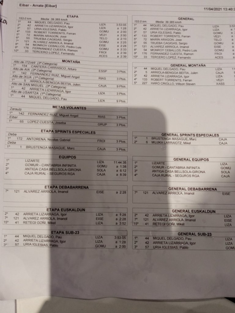 Jon Armendariz, director del Equipo Lizarte, valoró la actuación colectiva. “Este triunfo se basa en el equipo. Los ciclistas que tenemos son de primer nivel y, con eso, es mucho más sencillo que salgan las cosas. Todos, los siete corredores, han labrado una victoria importantísima para nosotros. El triunfo de Pau Miquel es el reconocimiento a un ciclista que ha ido creciendo año a año y que, gracias a eso, hoy se ha convertido en un corredor de mucha consistencia”, finalizaba el director pamplonés.