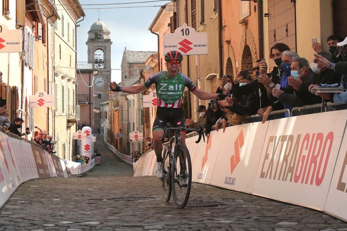 Alex Tolio (Zalf Euromobil Désirée Fior) ha logrado el triunfo en la Strade Bianche di Romagna, prueba disputada hoy, con salida y llegada en Mondaino y de 130 kilómetros de recorrido. El alicantino Juan Ayuso ha tenido una caída y ha terminado en la ambulancia. Todo ha quedado en un susto y piensa que el jueves estará en el inicio del Giro di Romagna, una ronda de cuatro etapas que finalizará el domingo y en la que tratará de subir a lo más alto del podio.