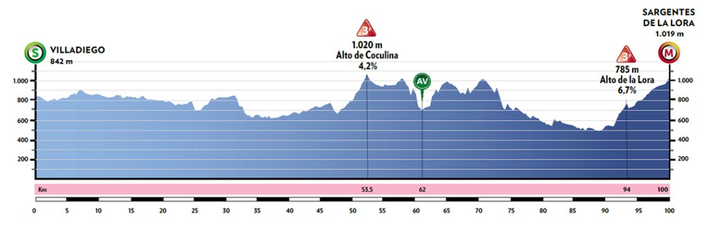 La primera dificultad montañosa de la carrera, el Alto de Coculina, llegará en el kilómetro 53,5 de una etapa en la que, a falta de seis kilómetros para el final, las corredoras deberán superar el Alto de la Lora.