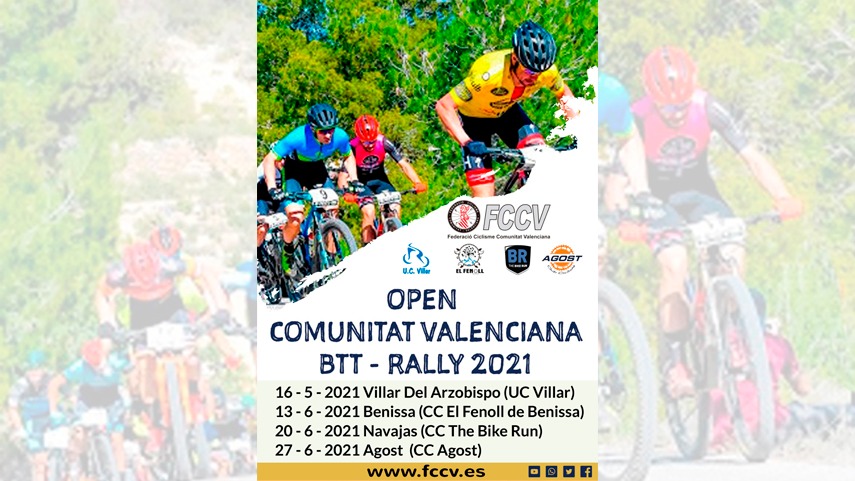 El Open BTT XCO de la Comunitat constará este año 2021 de cuatro pruebas puntuables. La competición se inicia el 16 de mayo en Villar del Arzobispo (Valencia) y finalizará el 27 de junio en Agost.