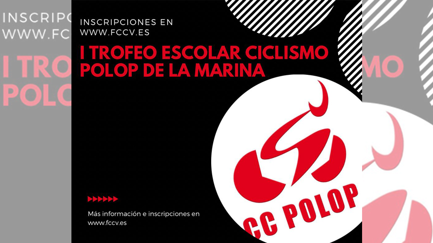 El I Trofeo Escolar de Ciclismo Polop de la Marina se disputará el sábado 15 de mayo, a partir de las 16 horas. Está organizado por el CC Polop y podrán participar las distintas categorías de las Escuelas, además de cadetes, masculinos y femeninos, y júniors femeninos. Se ha diseñado un circuito cercano al Campo de Fútbol-Polideportivo Polop para albergar las distintas carreras programadas.