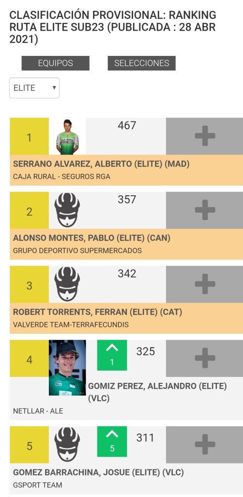 A nivel individual, Alberto Serrano (Filial Caja Rural) es el primero, con 467 puntos, con Alejandro Gómiz (Netllar Alé), cuarto, con 331; Josué Gómez (Gsport), cuarto, con 311; y Sergio Jiménez (Netllar Alé), octavo, con 219.