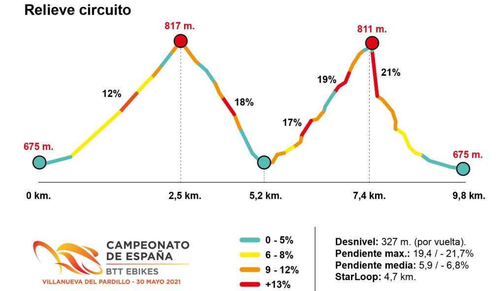 El Campeonato de España de BTT E-Bikes, que se celebrará el 30 de mayo en Villanueva del Pardillo, se desarrollará sobre un circuito completo de MTB XC de 9,5 km de longitud con un desnivel de 327 metros y rampas que superan el 21%. Las inscripciones ya están abiertas.
