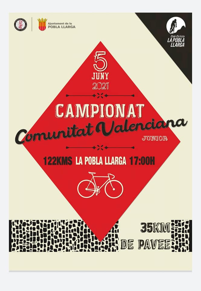 El sábado, 5 de junio, a partir de las 17 horas, se disputará en La Pobla Llarga el Campeonato Valenciano de Ciclismo de la categoría júnior. El Club Ciclista La Pobla Larga, organizador de la prueba, ha preparado un circuito espectacular, que atraviesa una zona adoquinada o de pavés en Carcaixent de 3,5 kilómetros y que se recorre en el Memorial Pascual Momparler. Se darán 10 vueltas hasta completar los 112 kilómetros previstos. “Será un campeonato único, diferente y duro. No lo dudes”, insisten desde la entidad organizadora.