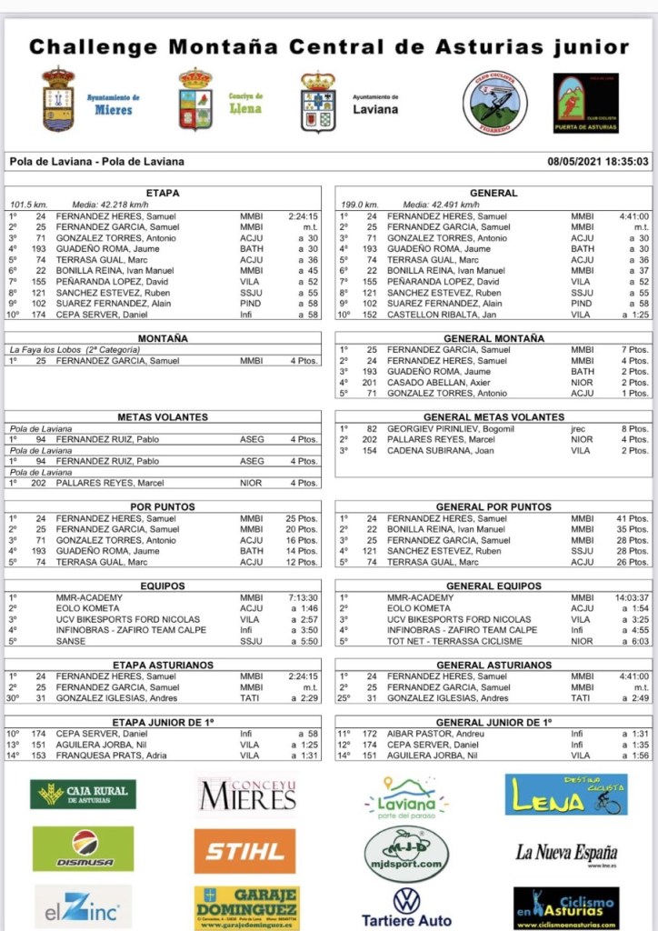 Daniel Cepa (Infinobras) firma una décima plaza y es el mejor joven de la jornada. En la general, Samuel Fernández Heres es el líder y Jaume Guardeño cuarto a 30 segundos. Andreu Aibar (Infinobras) comanda la clasificación de los júniors de primer año y su compañero Daniel Cepa es segundo. «Estoy muy contento de lucir este maillot. Vamos a ver si somos capaces de mantenerlo el domingo», señala Aibar.