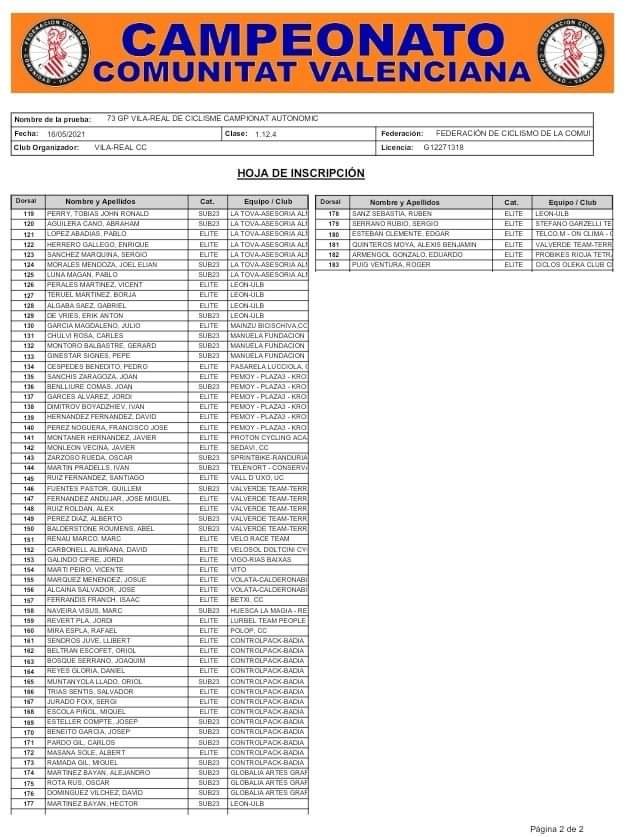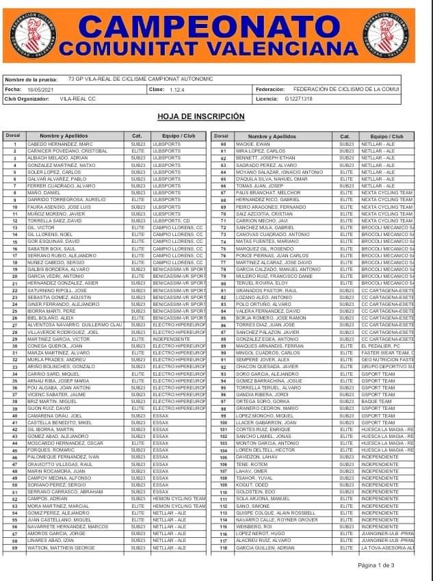 En la salida estará los equipos alicantinos Netllar Alé y Essax. Los sajeños pondrán en liza a Joel Camarena, Alfonso Campoy, Raúl Craviotto, Romaric Forqués, Martín Gil, Alejandro Gómez, Óscar Moscardó, Iván Palomeque y Sergio Soriano. Por su parte, los alcoyanos contarán con Alejandro Gómiz, Miguel Juan, Nahuel D’Áquila, Jorge Amorós, Carlos Mira, Izán Linares, Ewan Mackie, Matt Watson y Joe Bennett. A ellos hay que unir a Guillem Fuentes (Valverde Team); Carlos Soler y Pablo Galvañ, del Ulb Sports-Safir Fruits; Mario Granero (Gsport); Raúl Granados y Antonio Lozano (Cartagena); Joel Villaverde (Electro Hiper Europa); y Pepe Ginestar y Gerard Montoro, del Manuel Fundación.