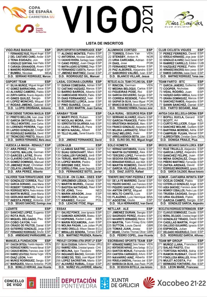 La Copa España élite y sub 23 continúa en tierras gallegas. Tras la suspensión el pasado fin de semana de la Clásica de Pascua por un brote de Coronavirus en Padrón el pelotón amateur continúa pedaleando en Galicia. La sexta jornada de la Copa de España se disputará el domingo, con inicio y final en la Avenida de Beiramar de Vigo, a partir de las 10:00. A esa misma hora arrancará el lunes el Campionato de Galicia con el mismo trazado. Importante apuesta la que se ha hecho en este 2021 desde el Club Ciclista Rías Baixas para acercar a las carreteras del sur de Pontevedra a lo mejor del plantel élite y sub-23.
