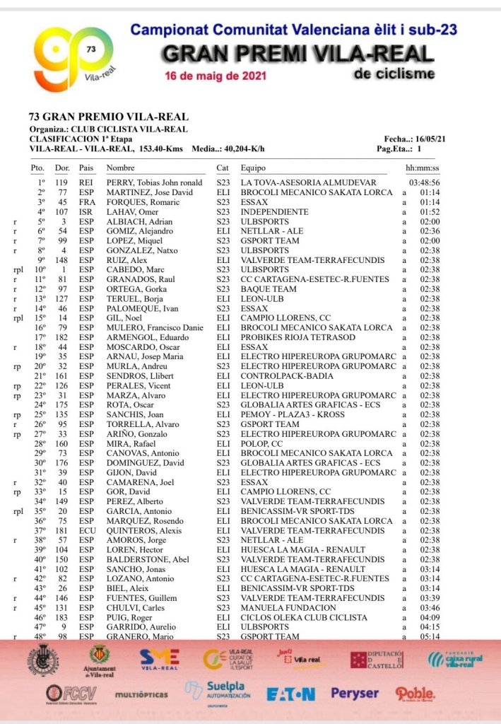 Toby Perry (La Tova-Asesoría Almudévar-Fernando Barceló) ha ganado el 73 GP Vila-real de ciclisme después de estar en fuga prácticamente toda la jornada, haciendo los últimos 40 kilómetros en solitario. El almoradidense Alejandro Gómiz (Netllar Alé) se ha proclamado campeón autonómico en la categoría élite y Adrián Albiach (ULB Sports) como mejor sub-23.
