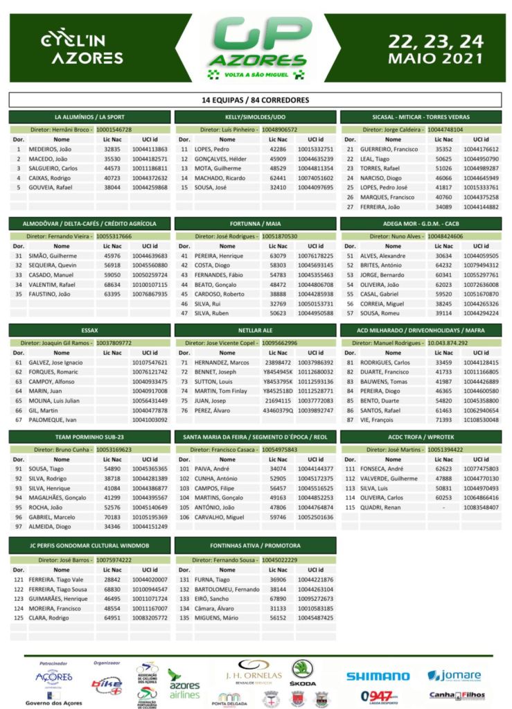 Los equipos Netllar Alé y Essax disputarán del 22 al 24 de mayo el Gran Premio de las Azores / Volta a São Miguel. La competición está reservada para la categoría Sub 23 y está inscrita en el calendario Nacional de la UVP-FPC. Pueden participar equipos Continentales. Viajaran con el conjunto de la Fundación Benicadell Josep Tomàs, Joe Benett, Tom Martin, Marcos Navarrete, Louis Sutton y Álvaro Sagrado. Por su parte lo sajeños alinearán a José Ignacio Gálvez, Romaric Forqués, Alfonso Campoy, Juan Marín, Luis Julián Molina, Iván Palomeque y el alicantino Martín Gil.
