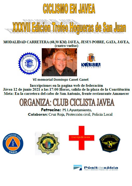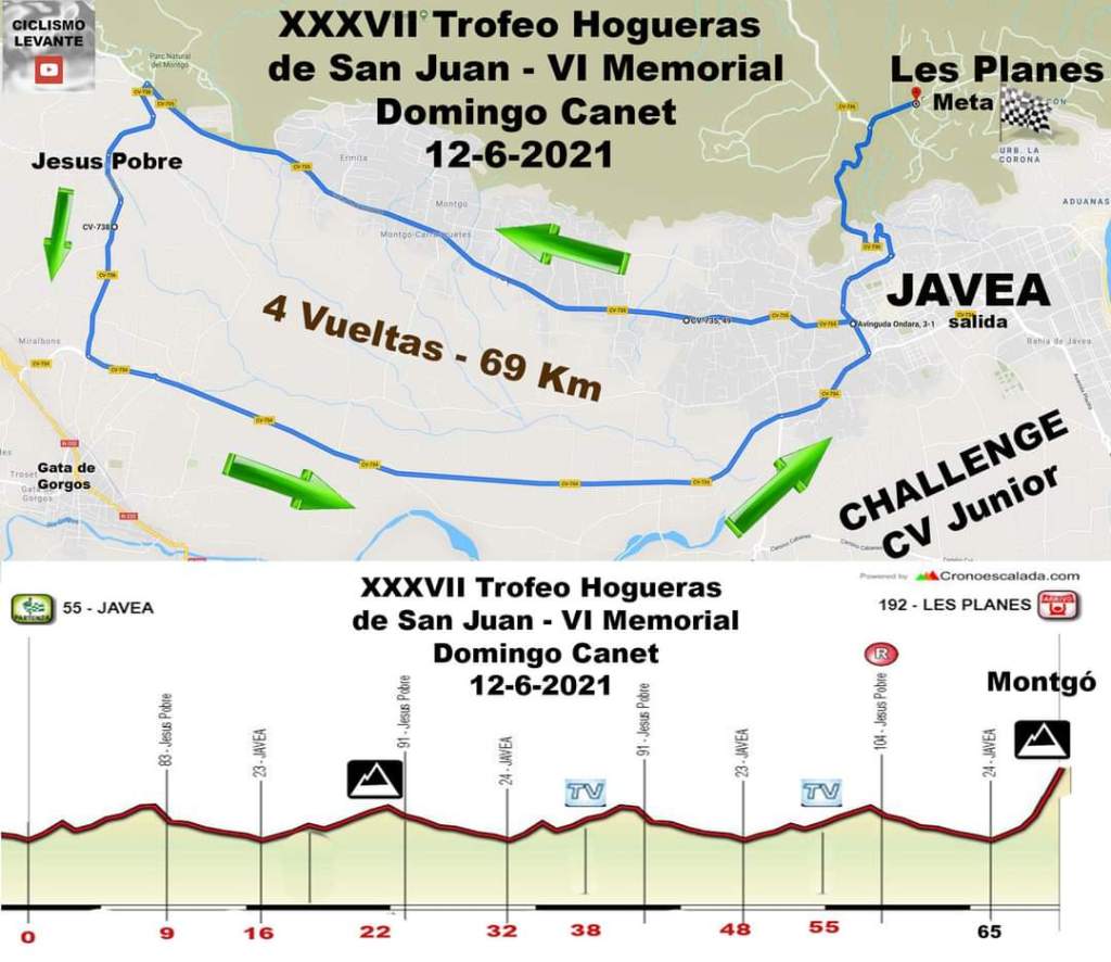 El sábado se disputa en Jávea la 37 edición del Trofeo Hogueras de San Juan – VI Memorial Domingo Canet, puntuable para la Challenge de la Federación de Ciclismo de la Comunidad Valencina (FCCV) júnior que lidera Pau Martí (Teika), después del Trofeu Sant Pascual disputado en Genovés, por delante de Miguel Solera (Aminuz) y de Andreu Aibar (Infinobras). Martí viste también el maillot de la montaña, mientras que Pablo Manuel Monge hace lo propio con el de las metas volantes.